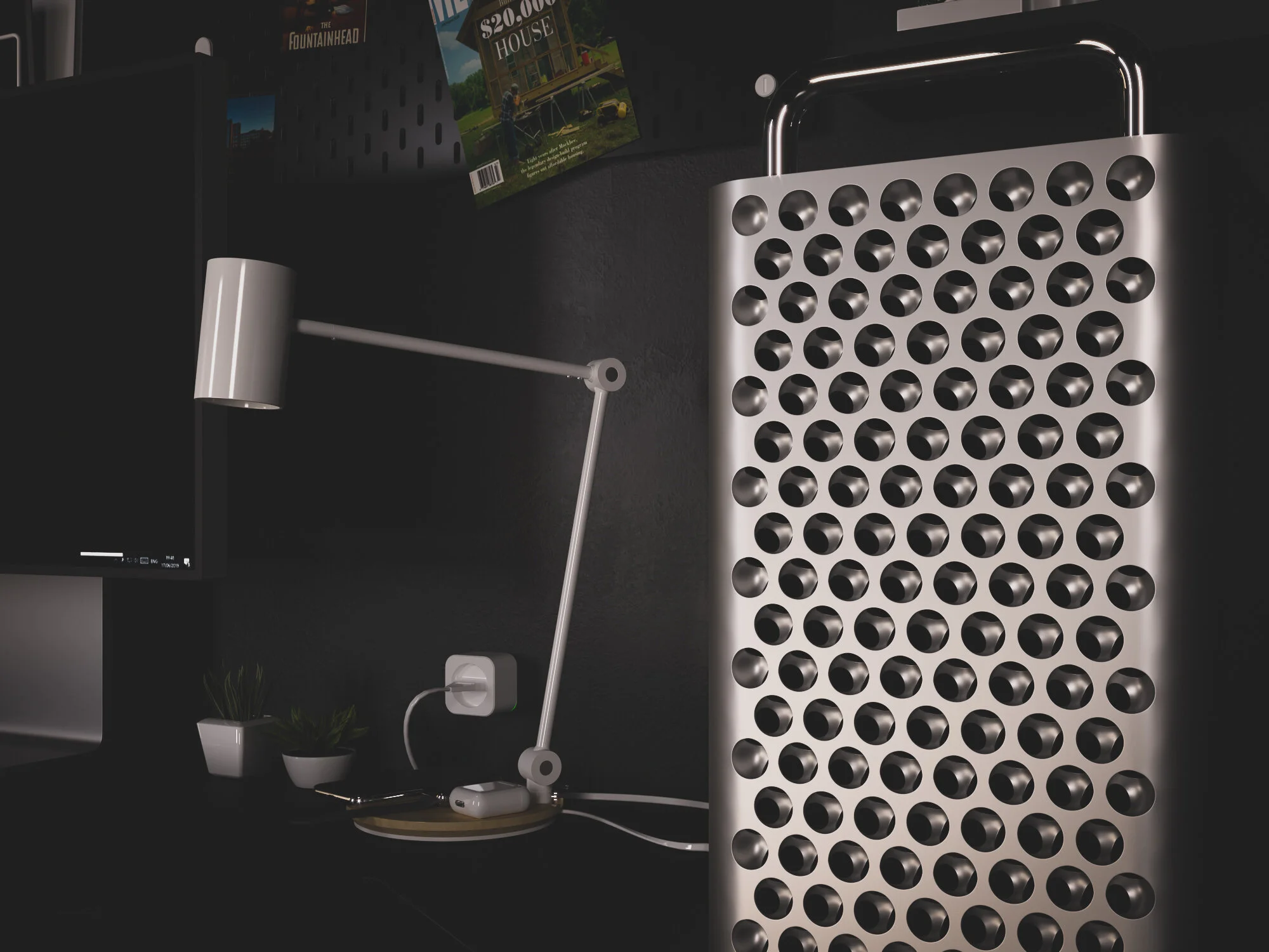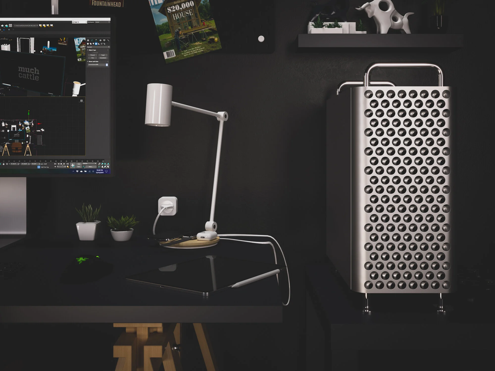 Images created for marketing purposes. A similar recreation of my home studio at the time (minus the $10,000 Mac Pro + Display, of course). These images were fully composed and rendered on a Razer Blade laptop—something that was out of the ordinary for my desktop-preferred workflow. This project was an opportunity to study studio lighting and compositions focused on a few interior objects rather than large exterior buildings.